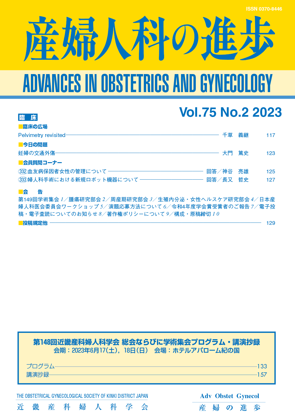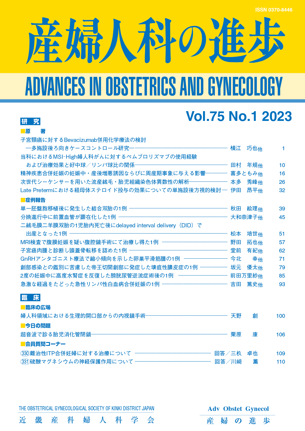 産婦人科の進歩75巻 1-4号