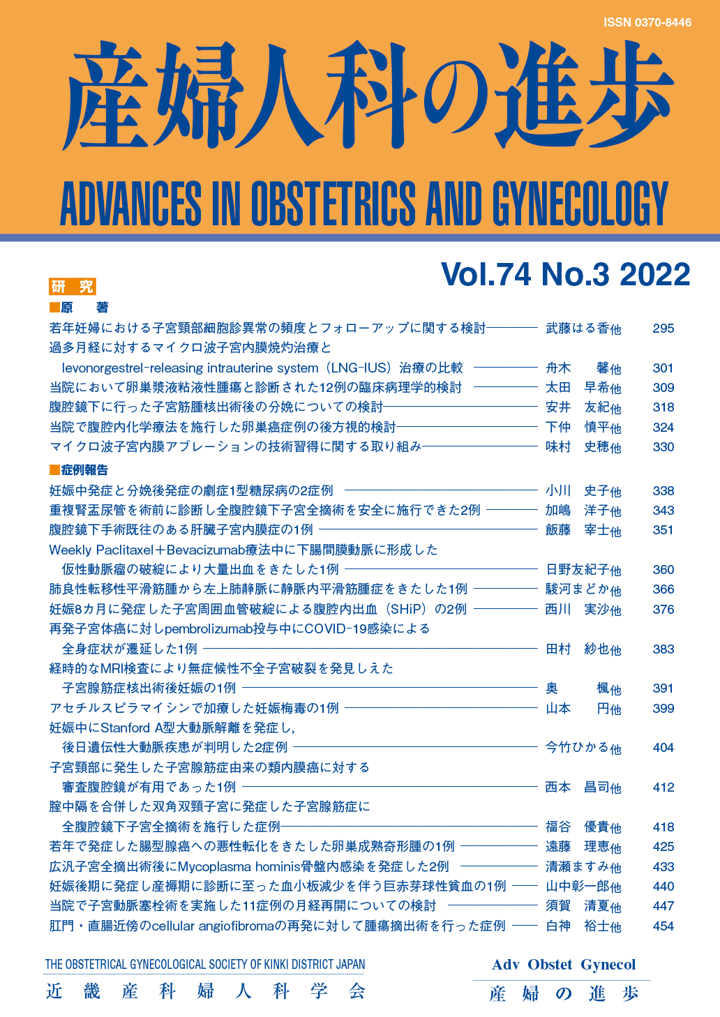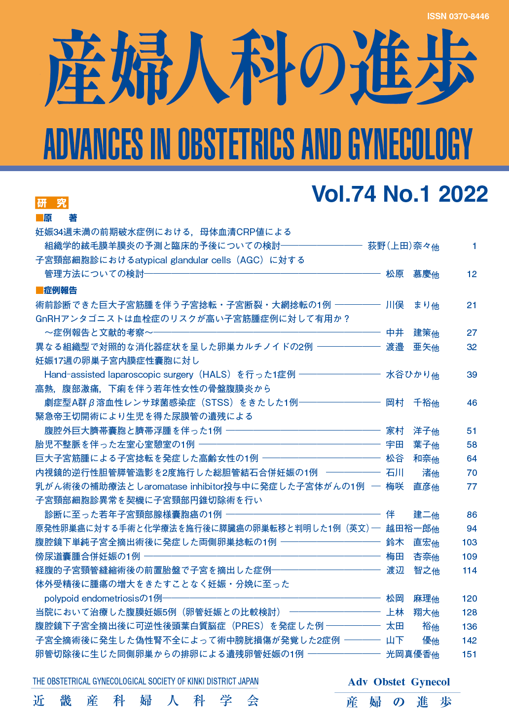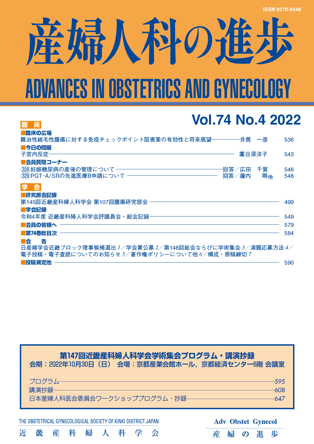 産婦人科の進歩74巻 1-4号