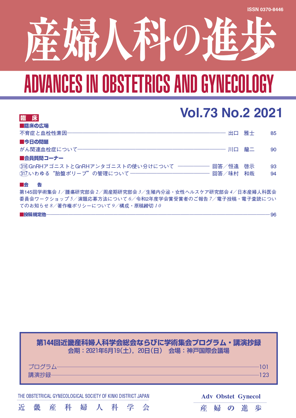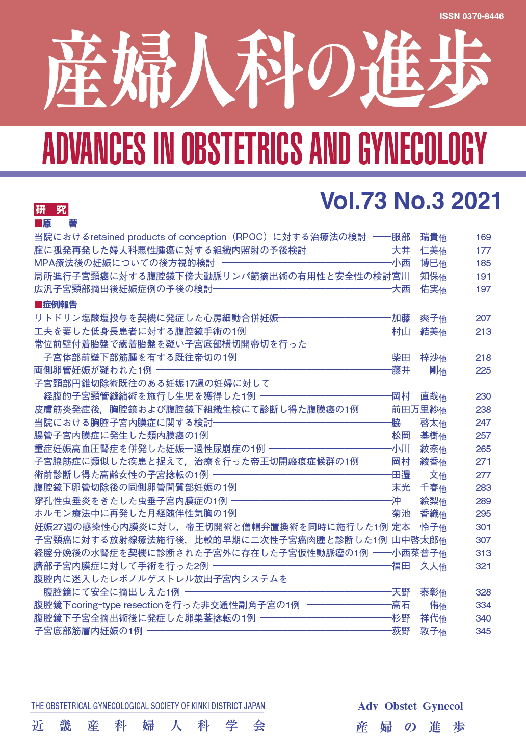 産婦人科の進歩73巻 1-4号