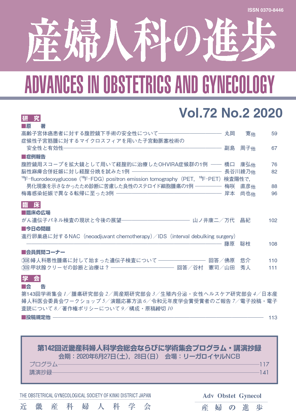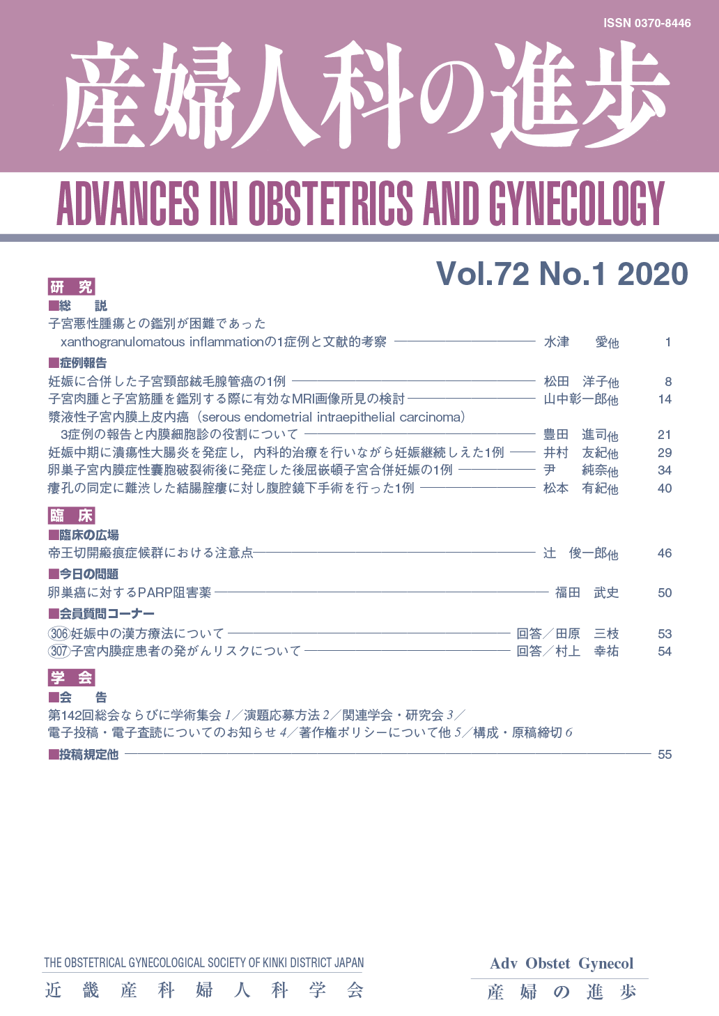 産婦人科の進歩72巻 1-4号