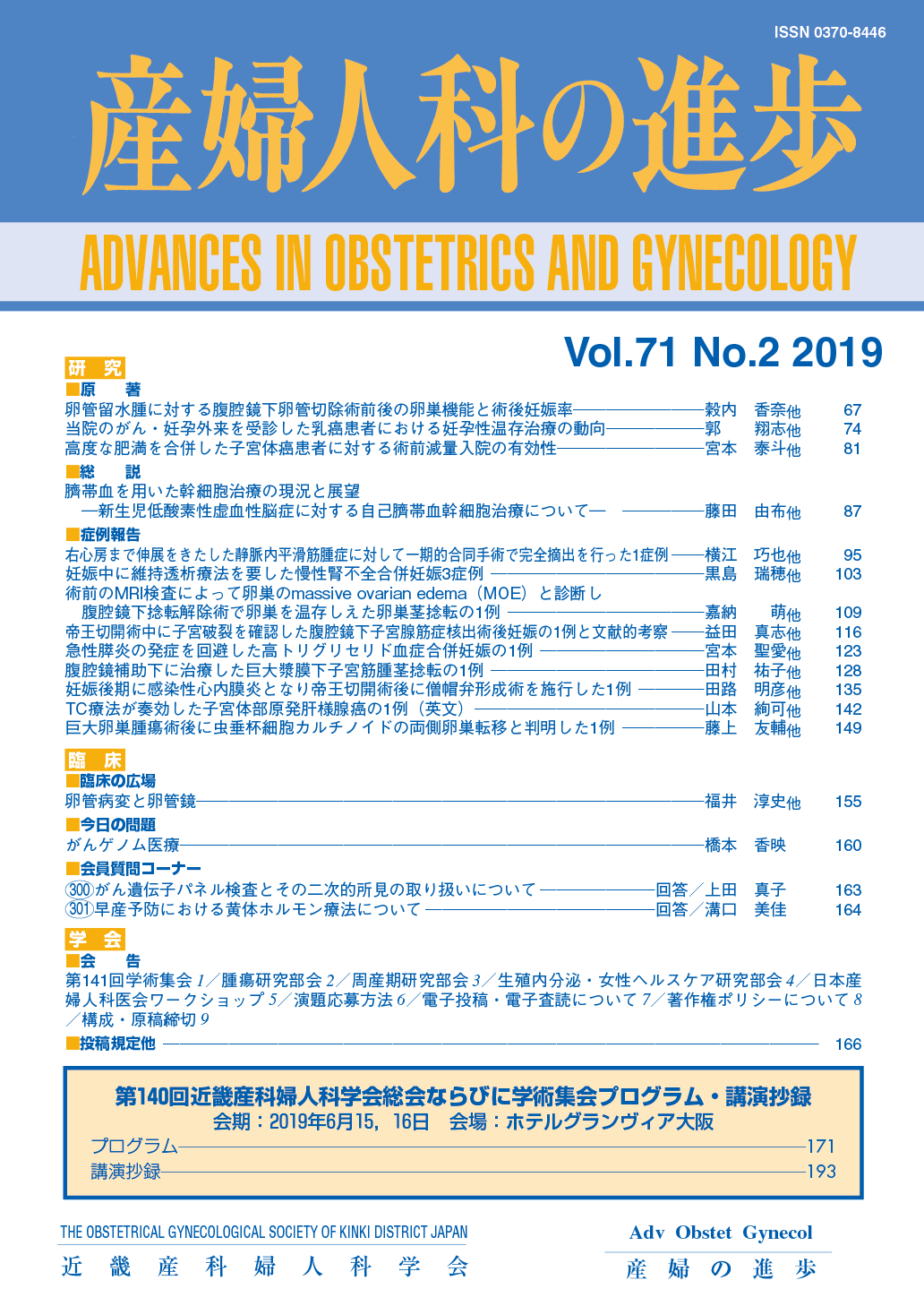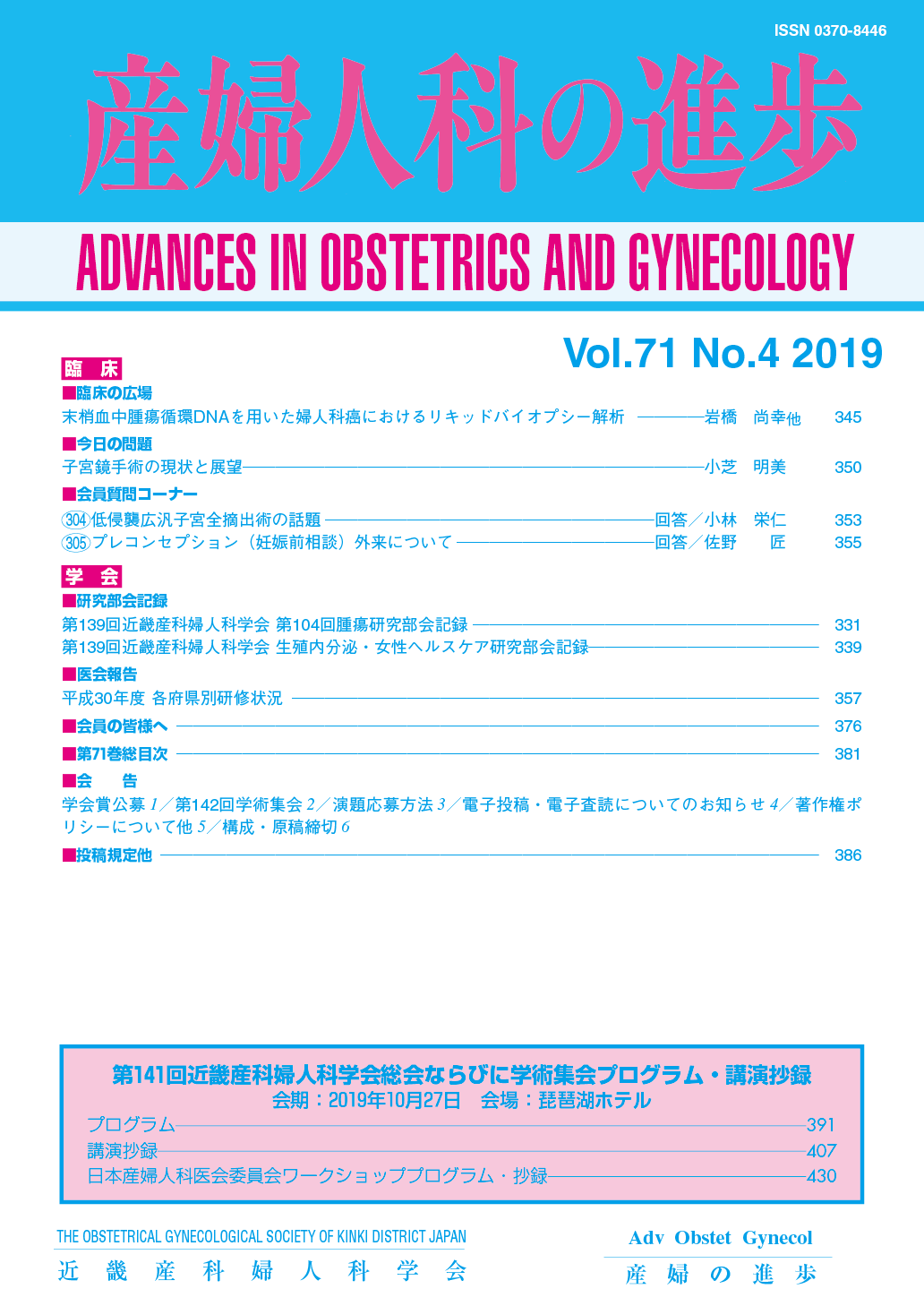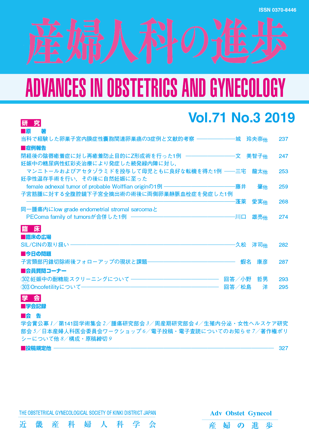 産婦人科の進歩71巻 1-4号