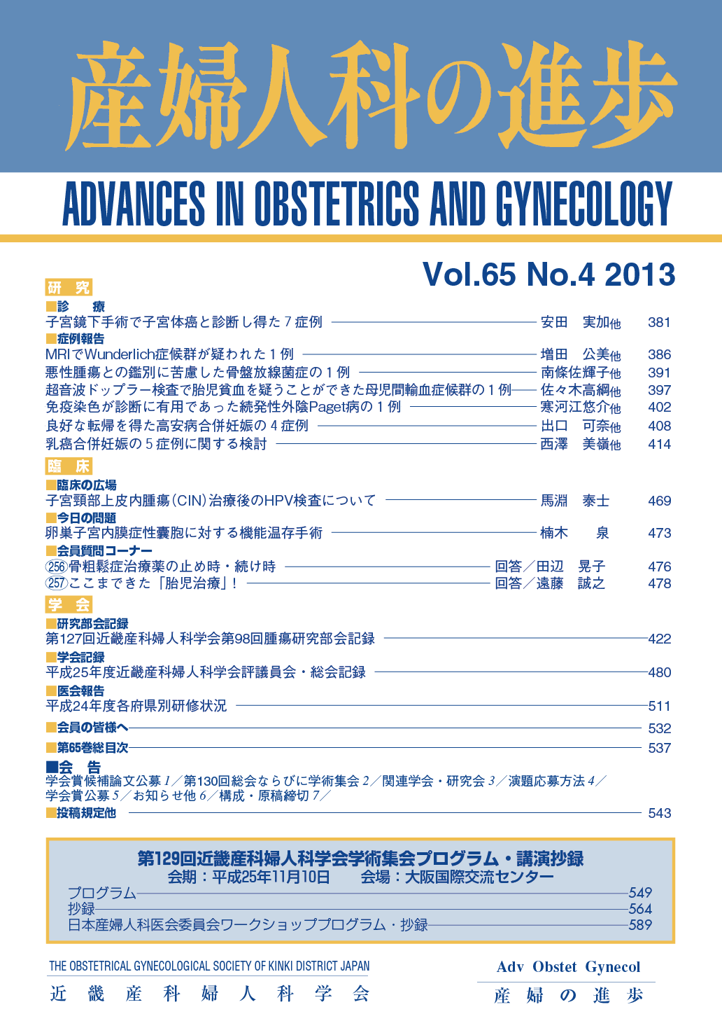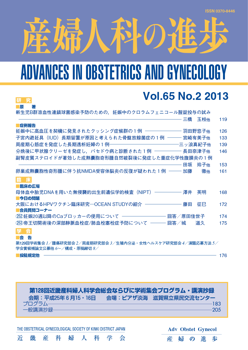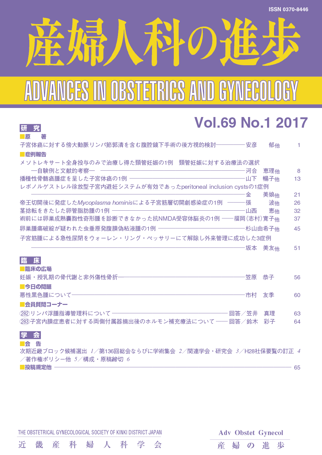 産婦人科の進歩65巻 1-4号