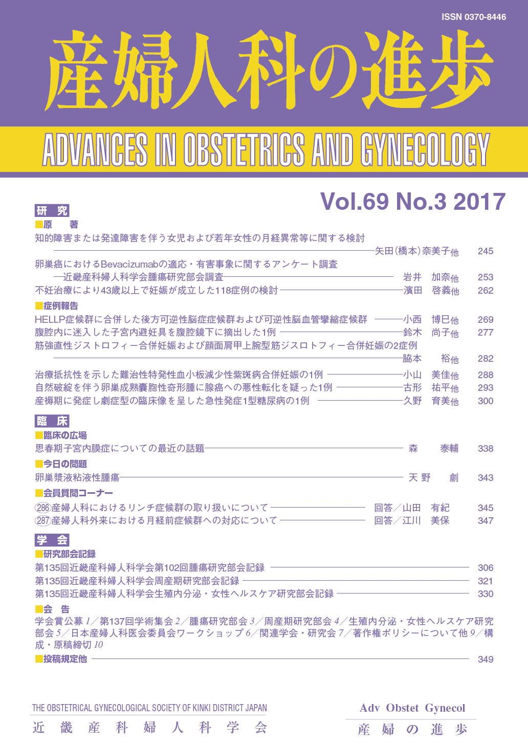 産婦人科の進歩69巻 1-4号