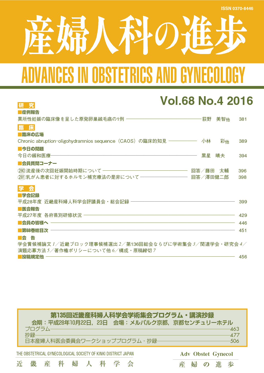 産婦人科の進歩68巻 1-4号