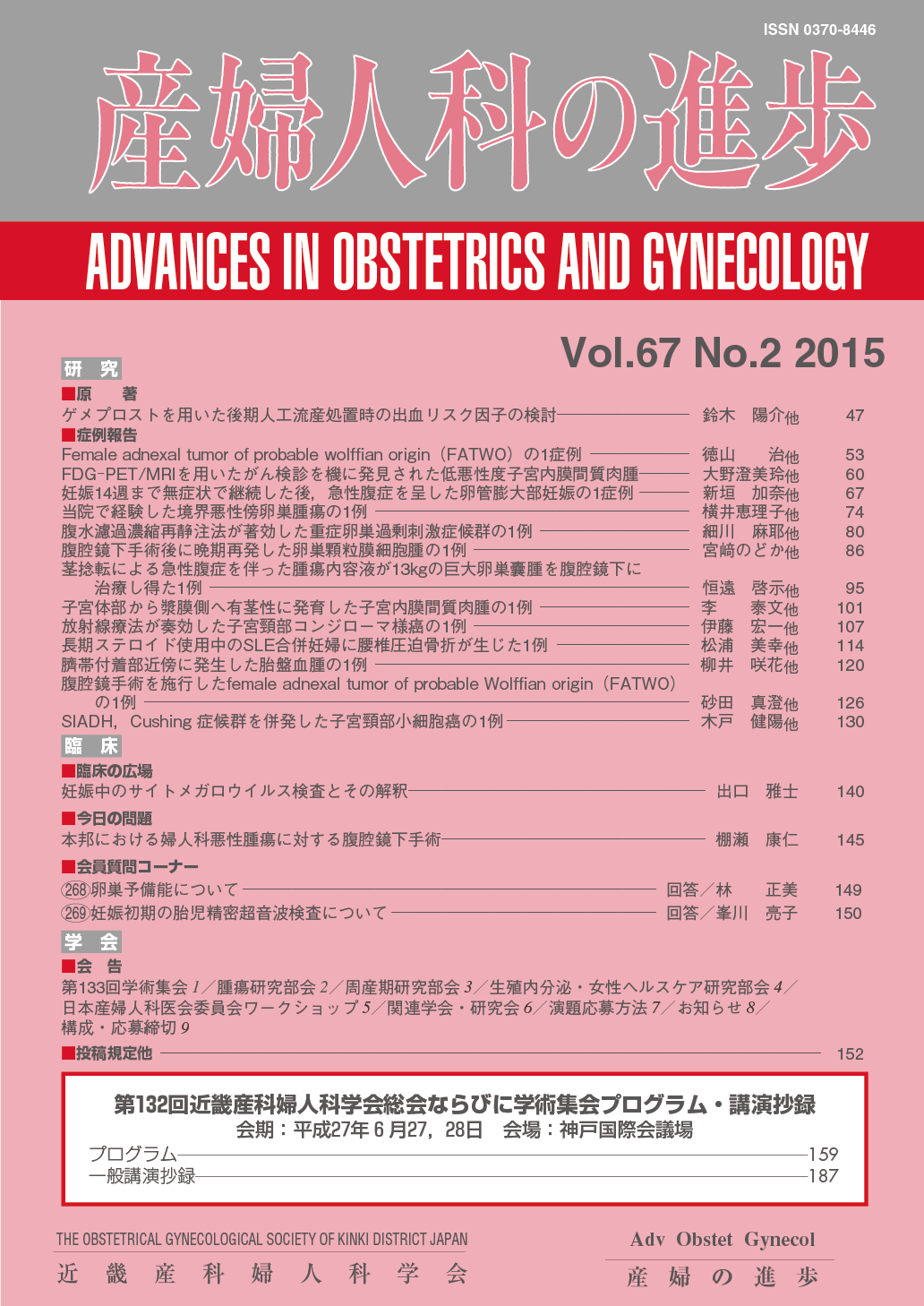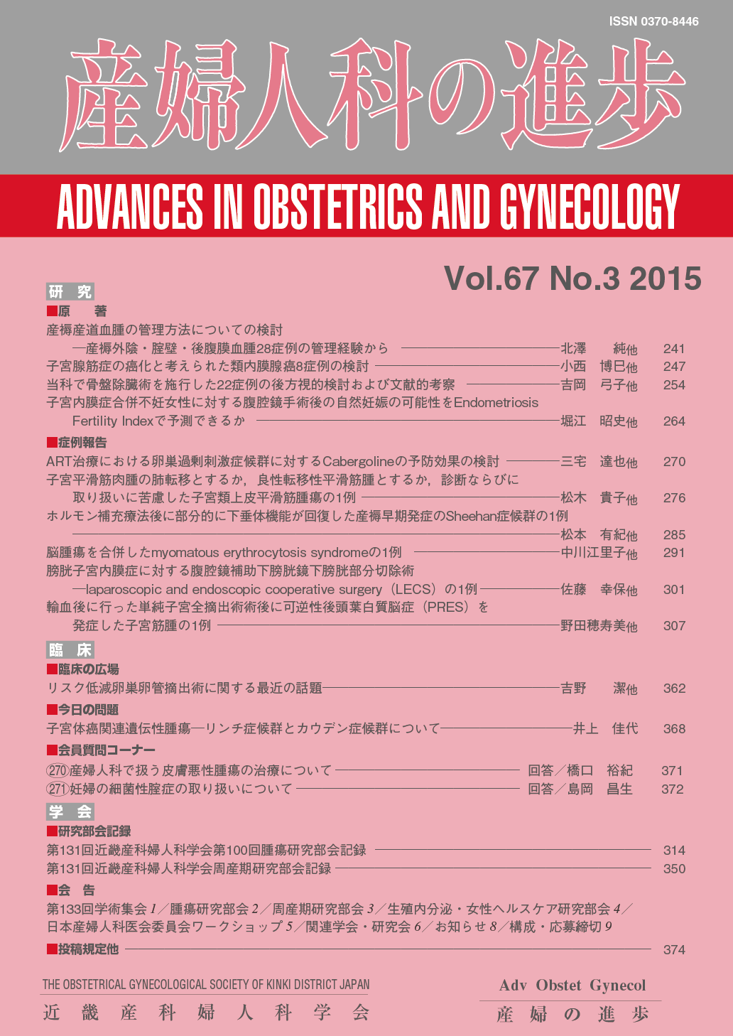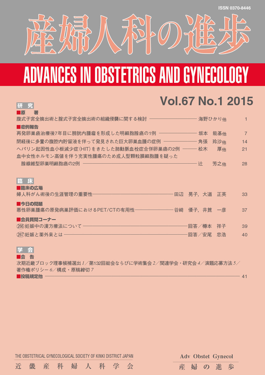 産婦人科の進歩67巻 1-4号