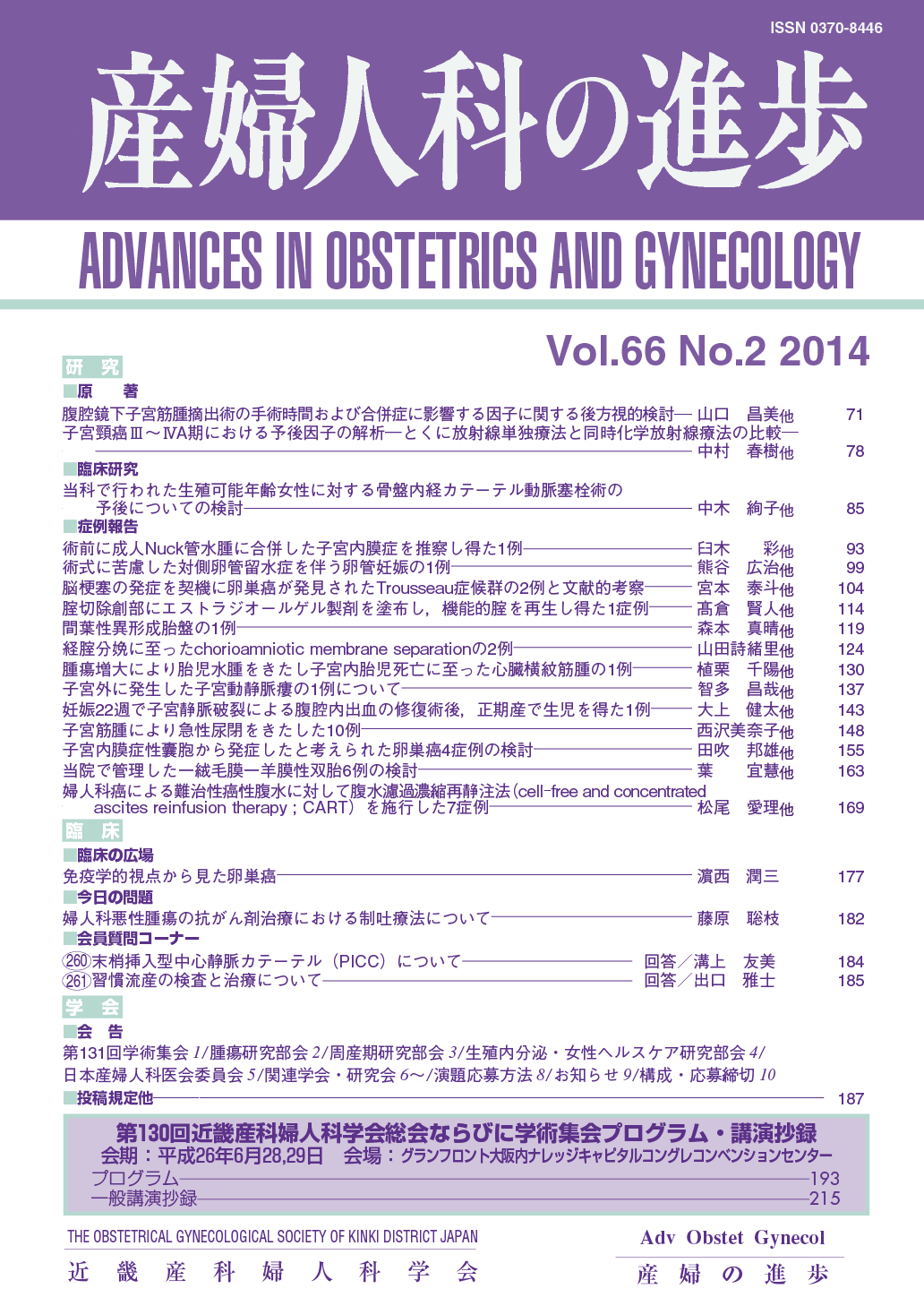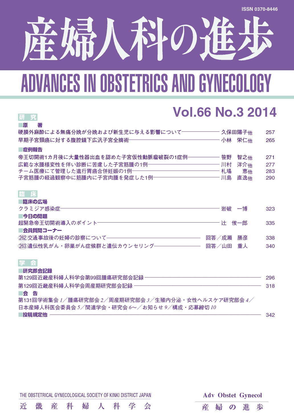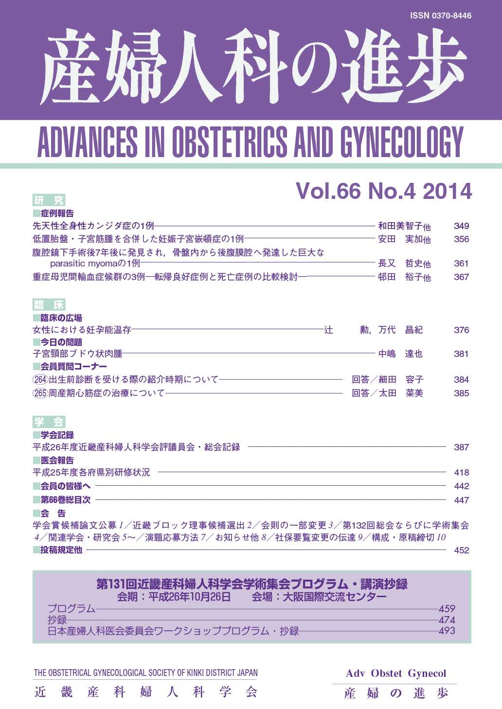 産婦人科の進歩66巻 1-4号