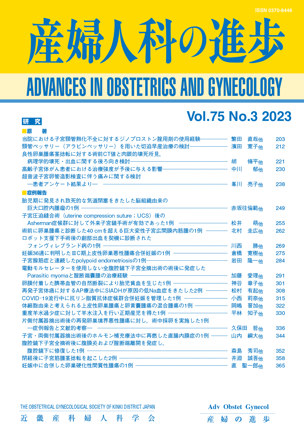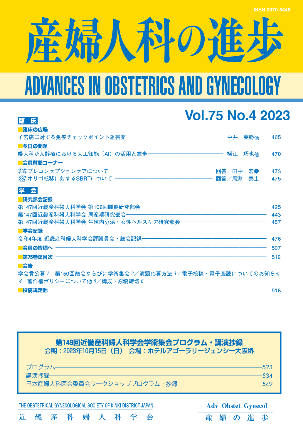 産婦人科の進歩75巻 1-4号