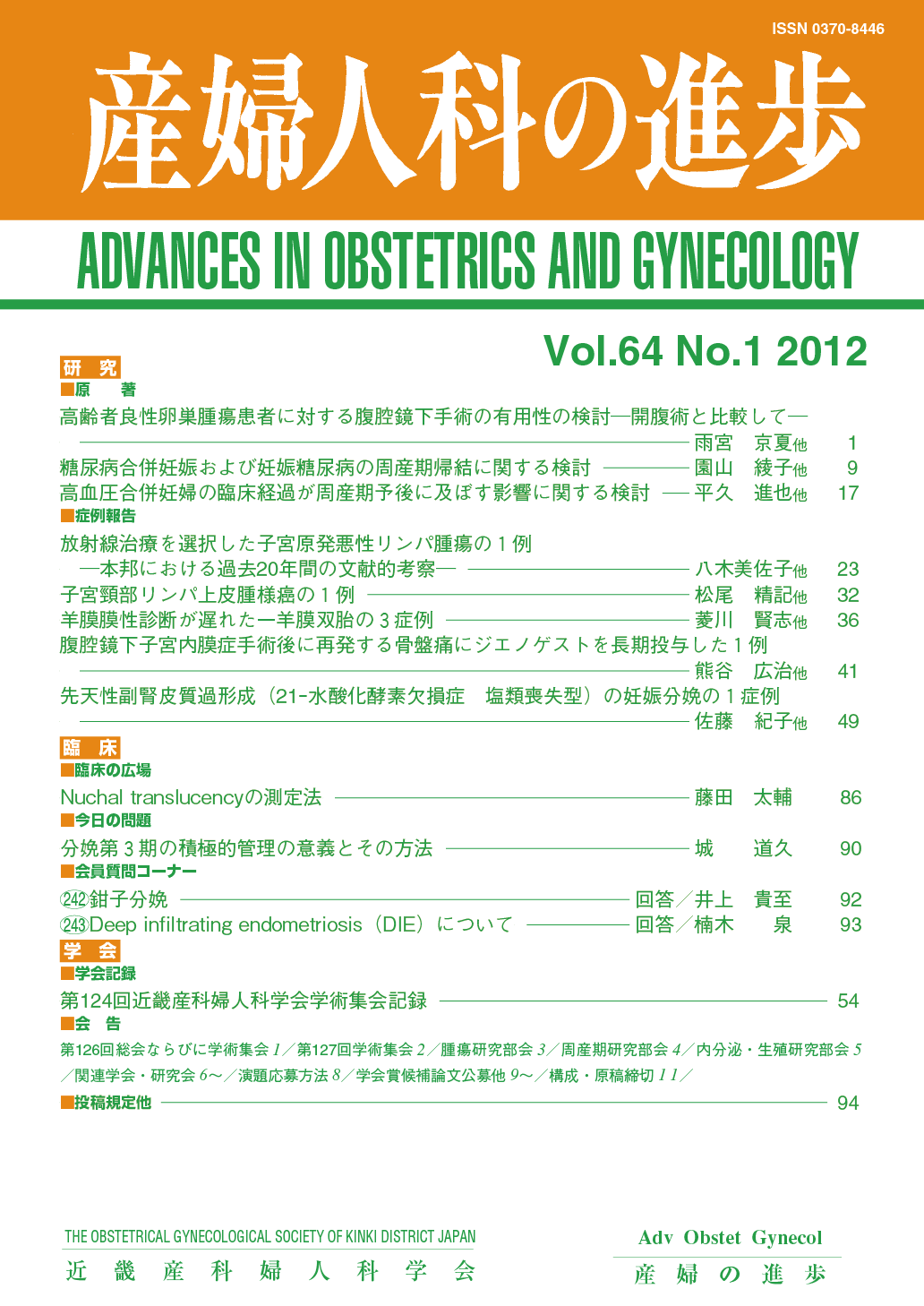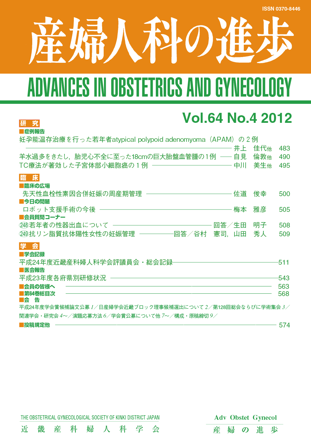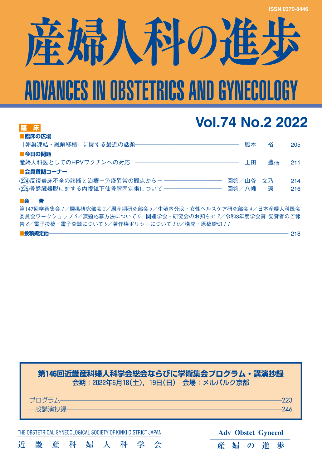 産婦人科の進歩74巻 1-4号