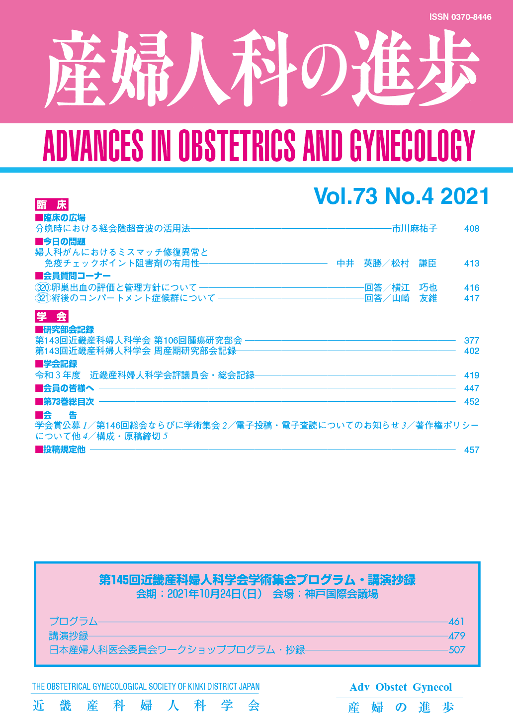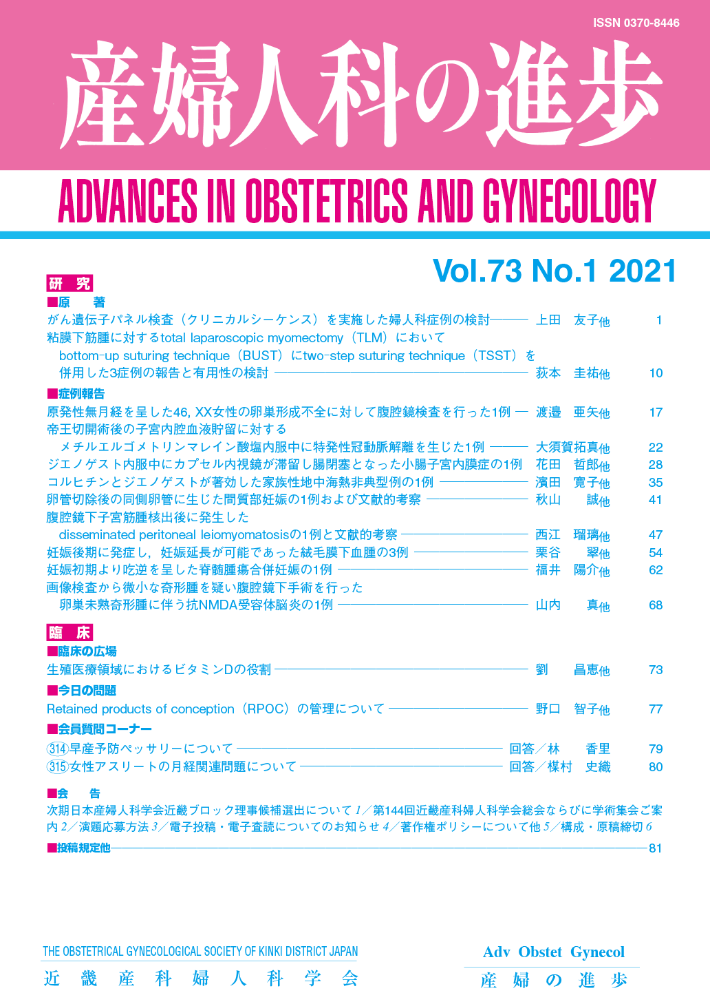 産婦人科の進歩73巻 1-4号