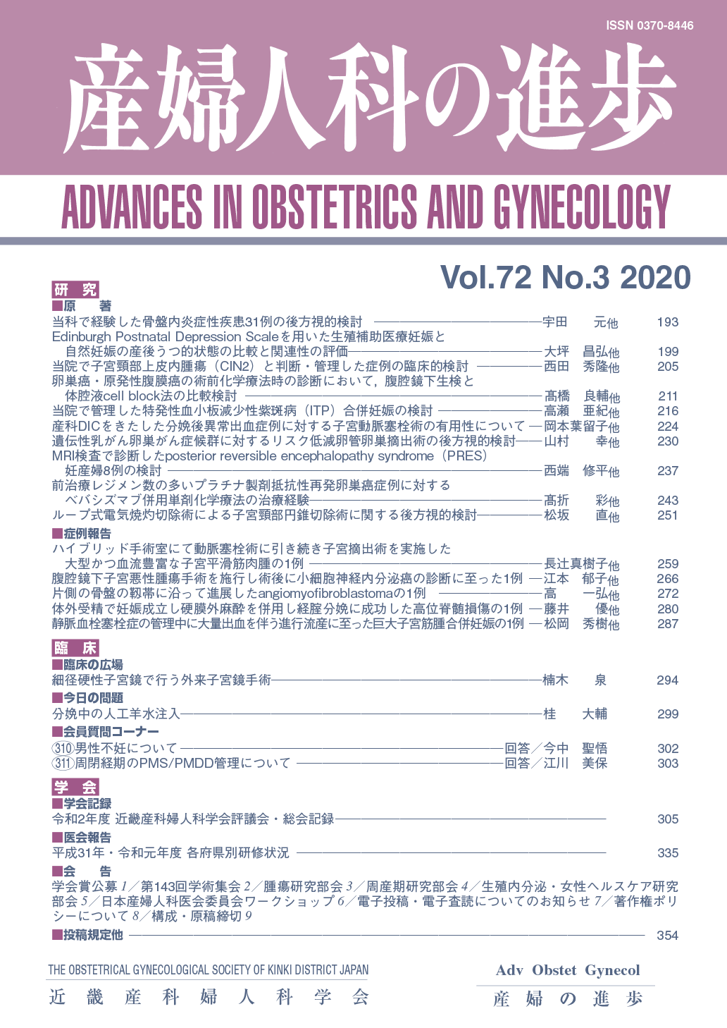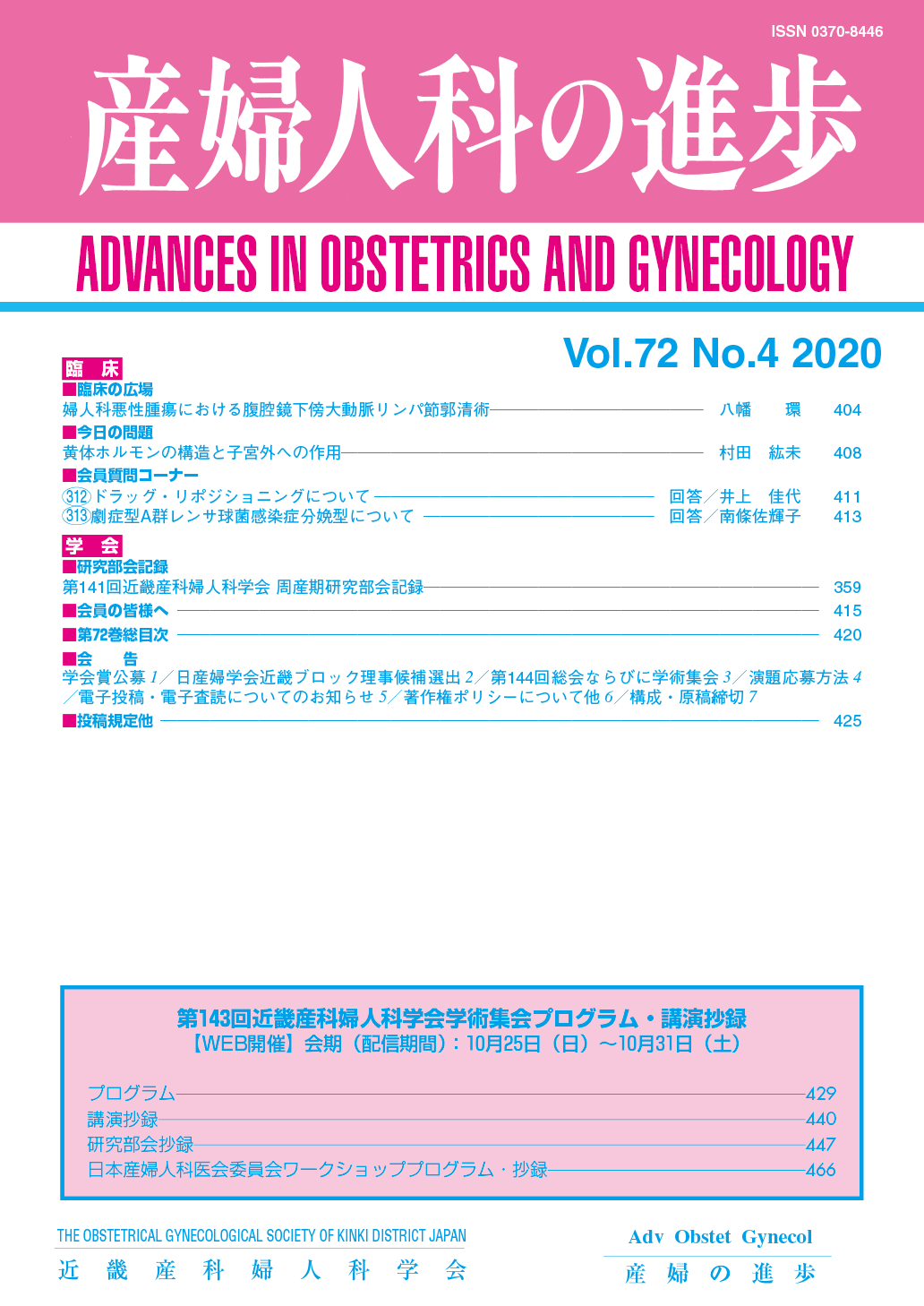 産婦人科の進歩72巻 1-4号