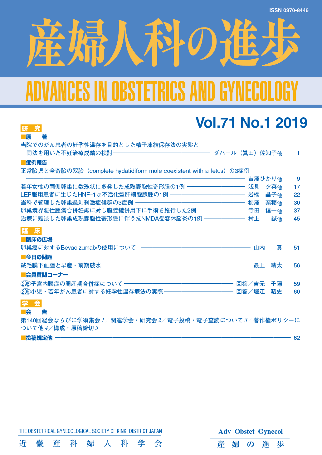 産婦人科の進歩71巻 1-4号