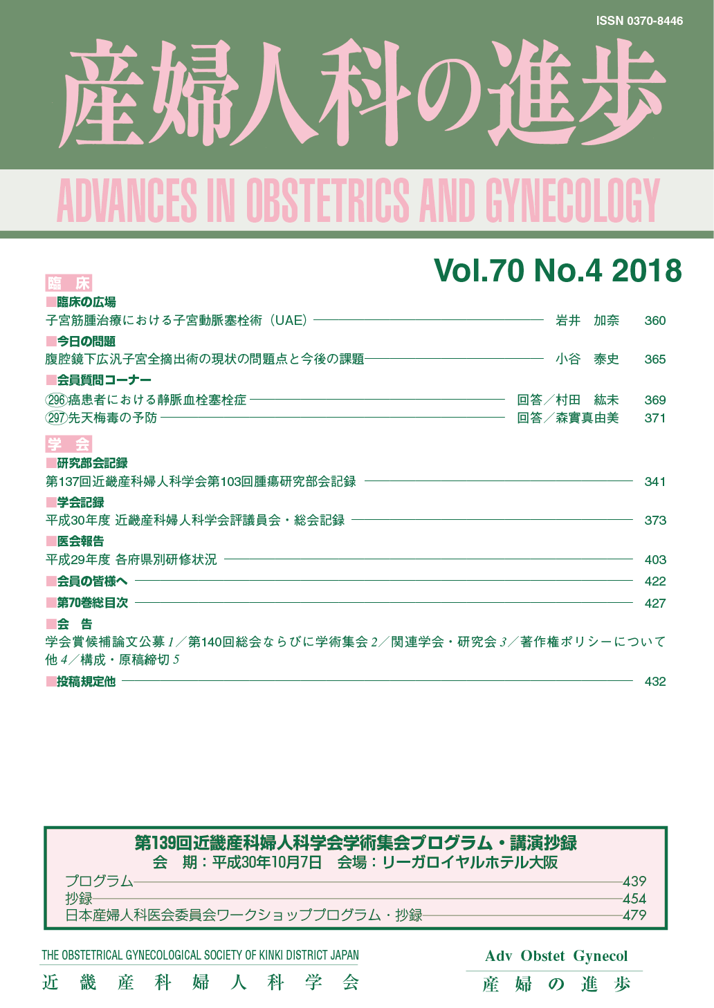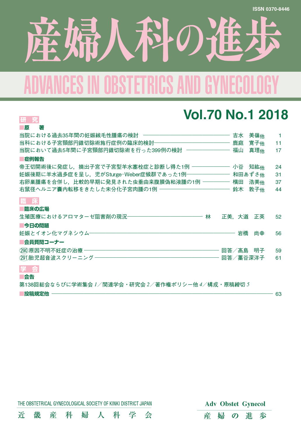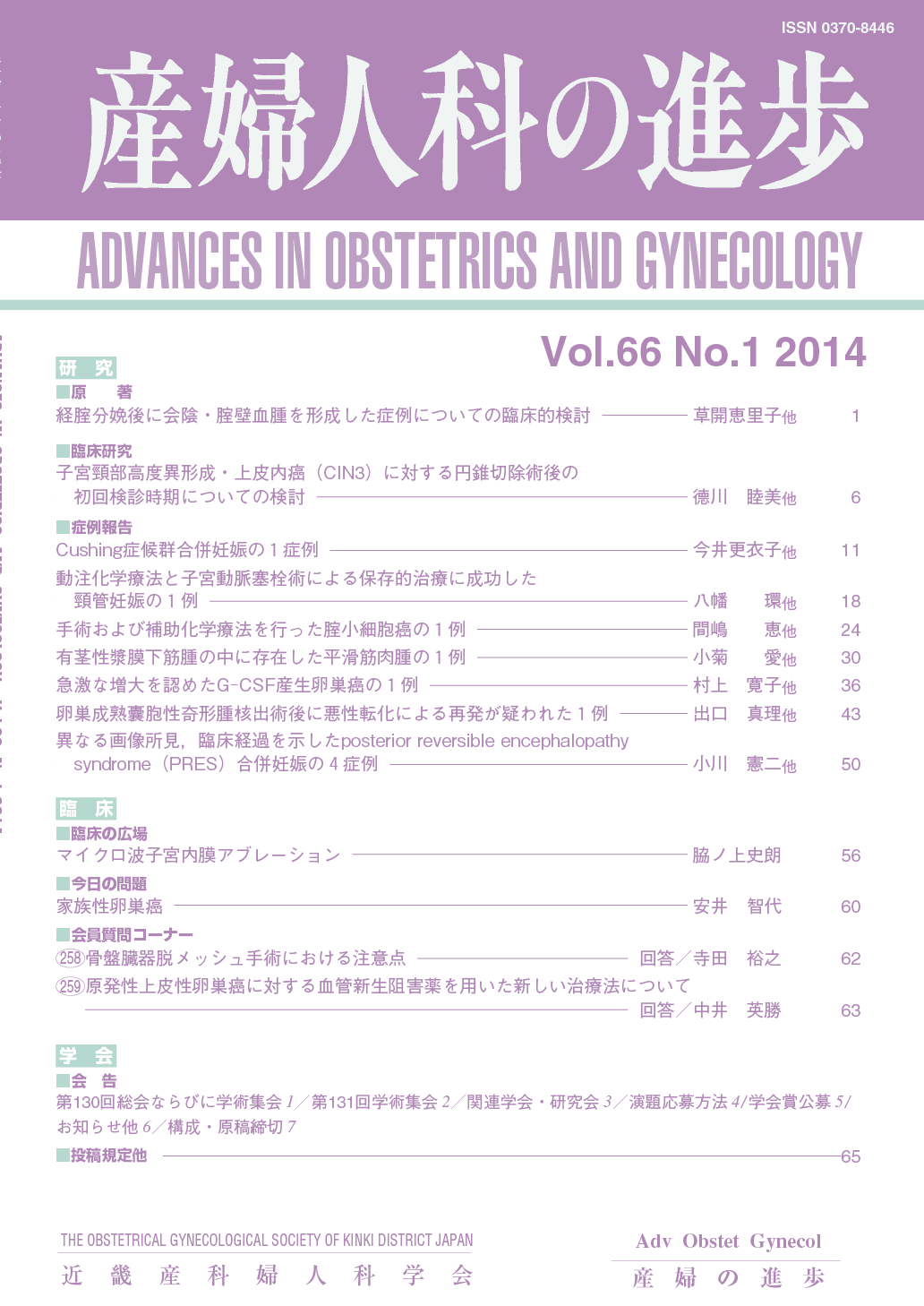 産婦人科の進歩66巻 1-4号