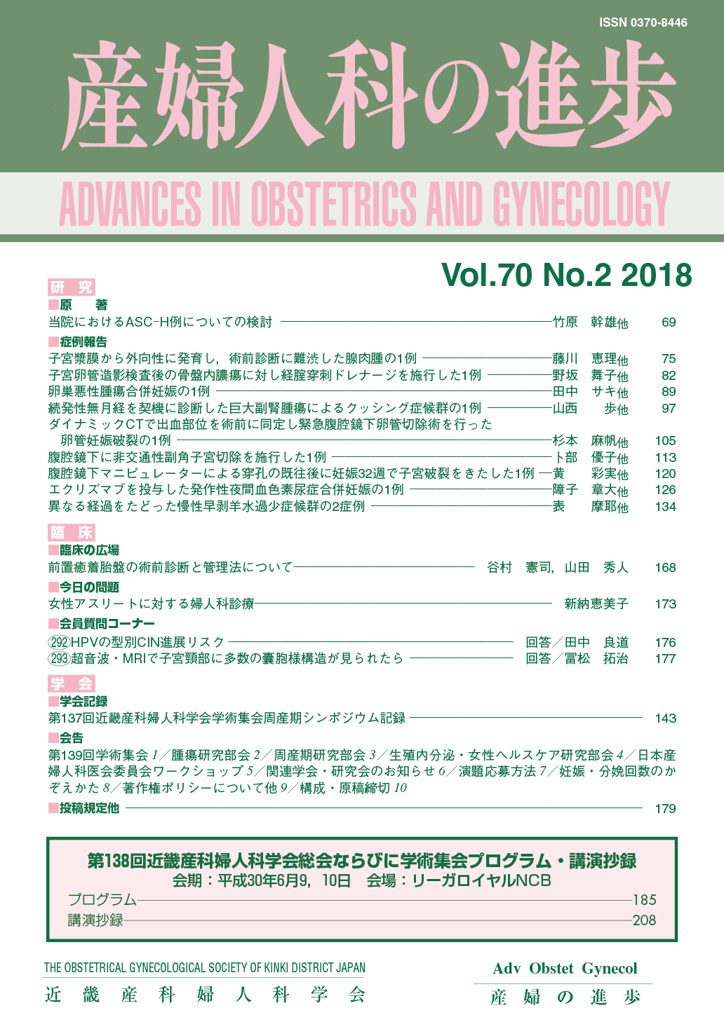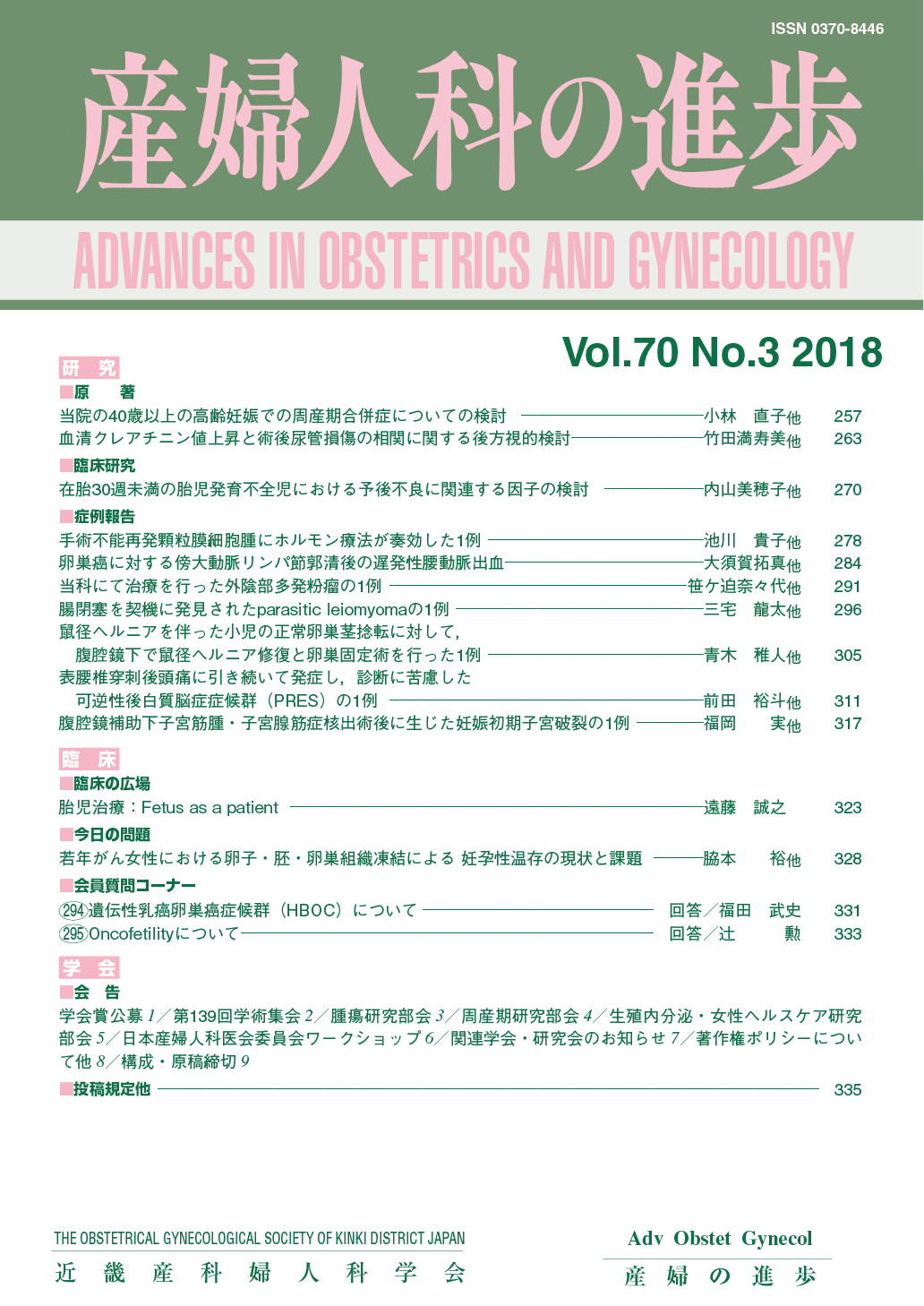 産婦人科の進歩70巻 1-4号