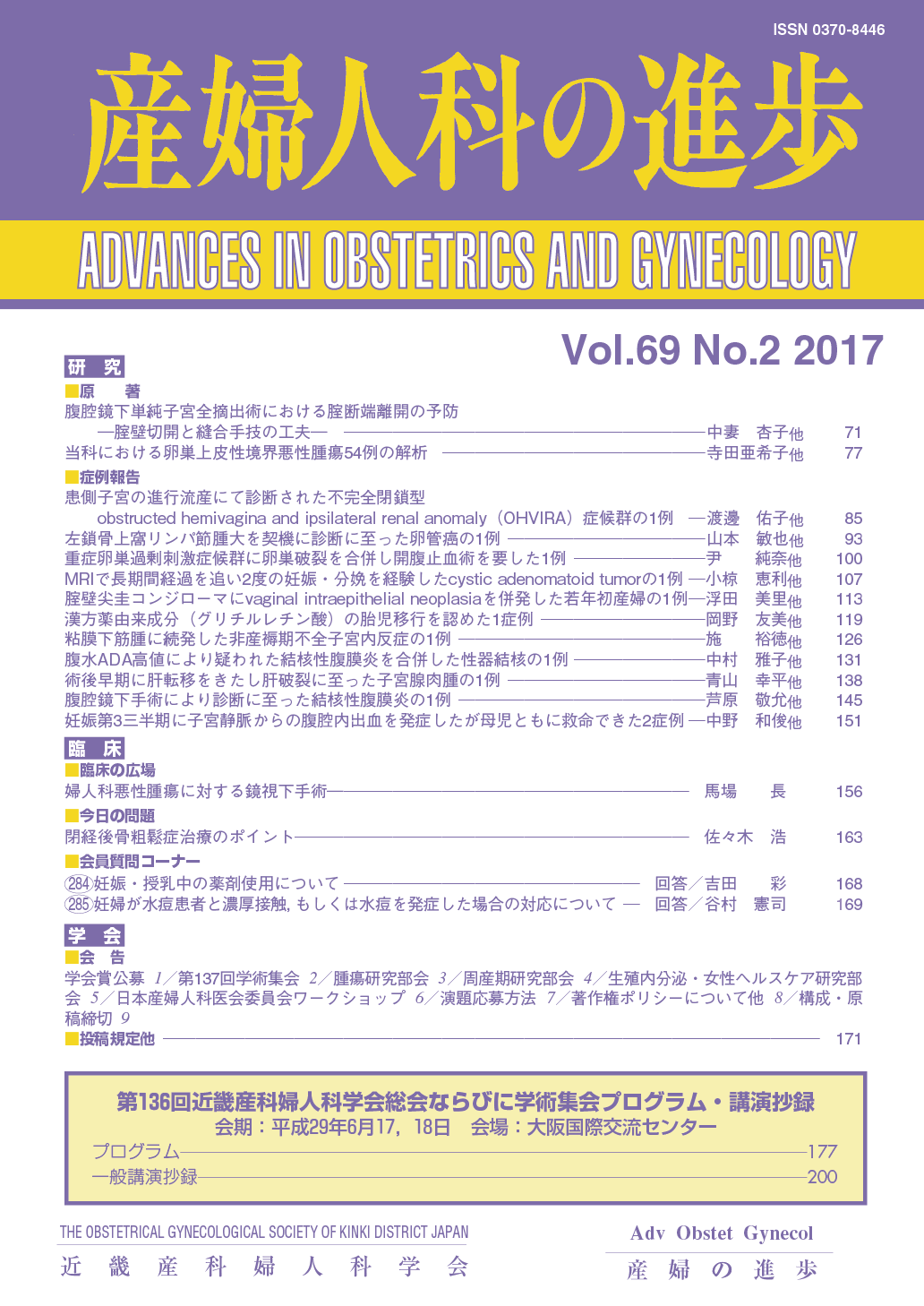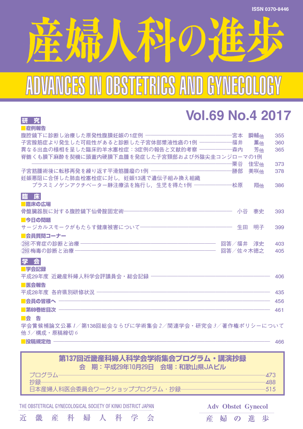 産婦人科の進歩69巻 1-4号
