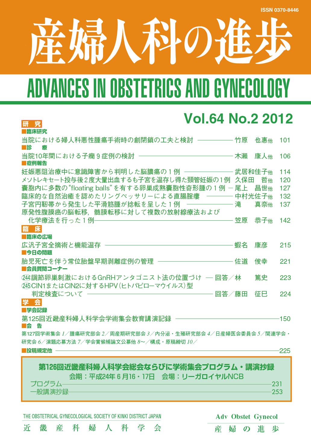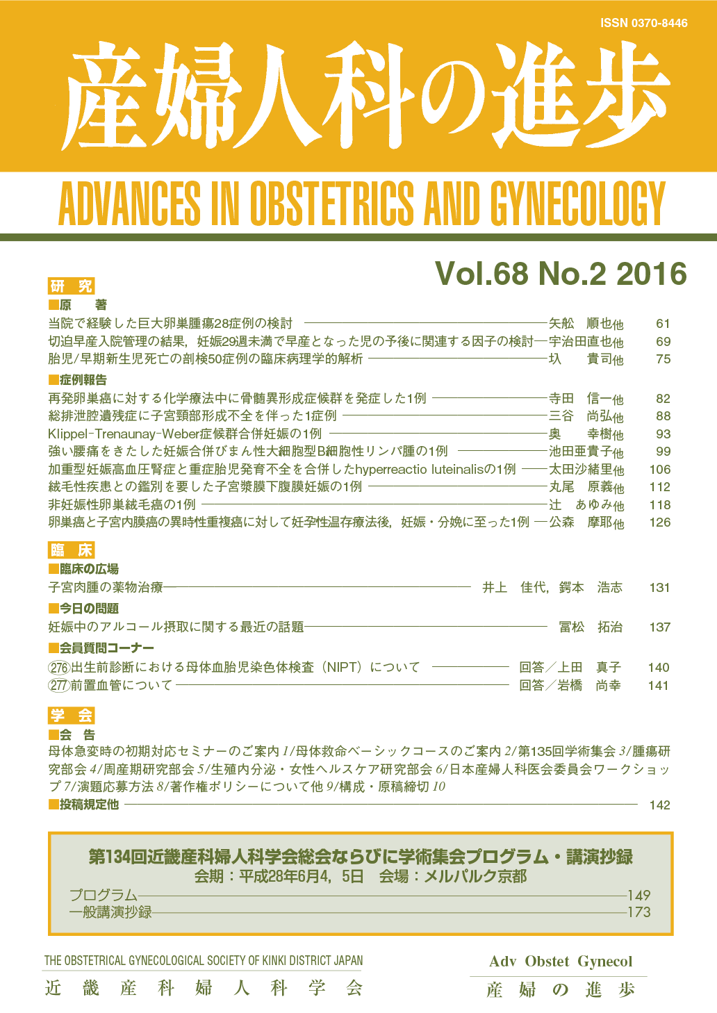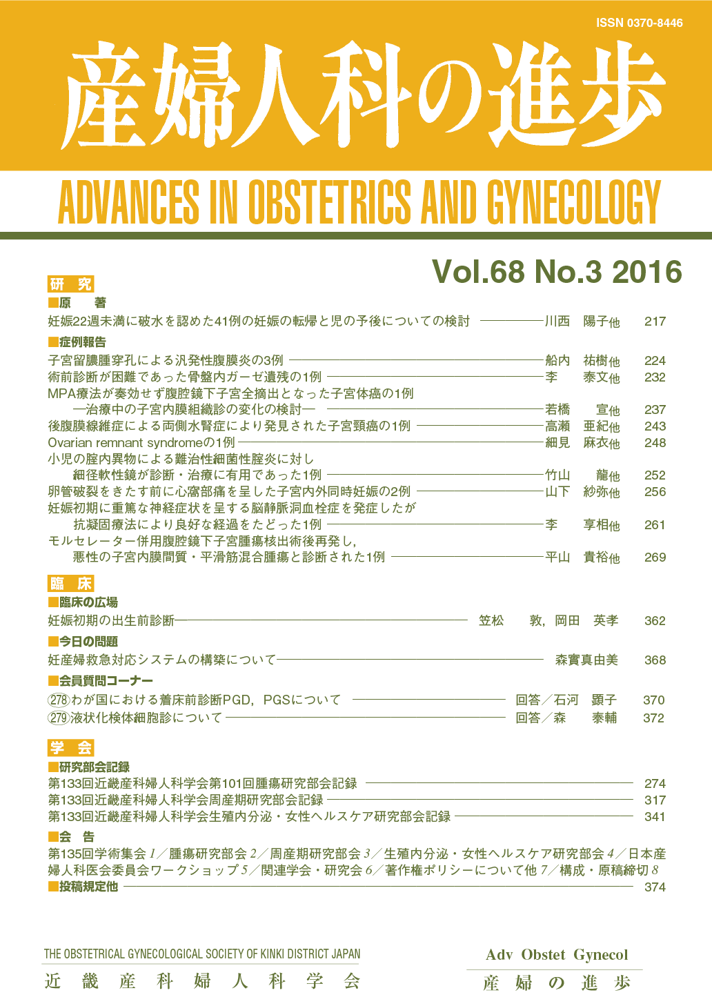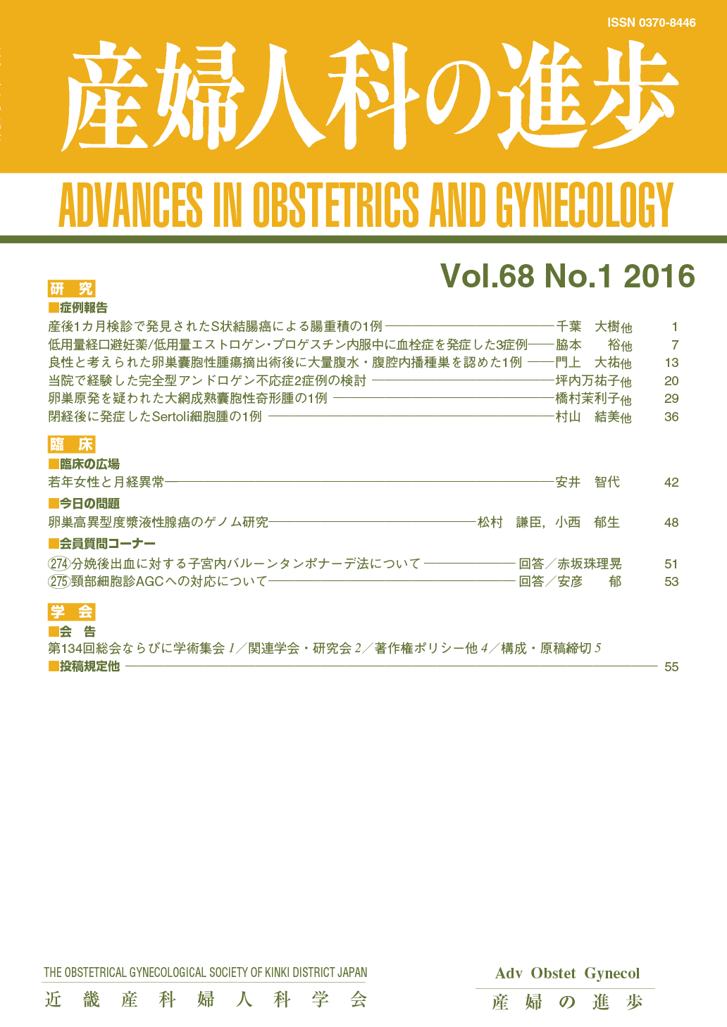 産婦人科の進歩68巻 1-4号