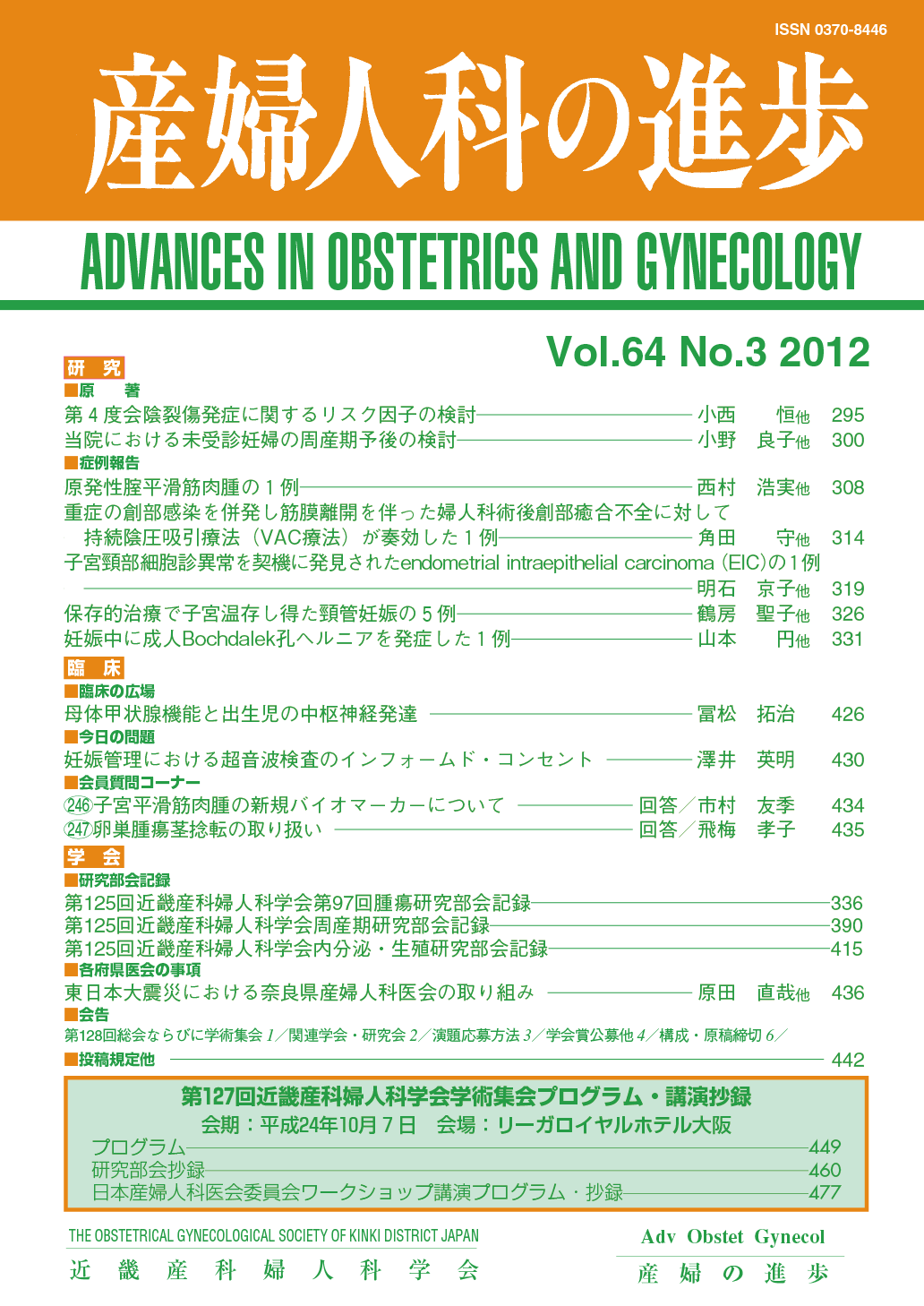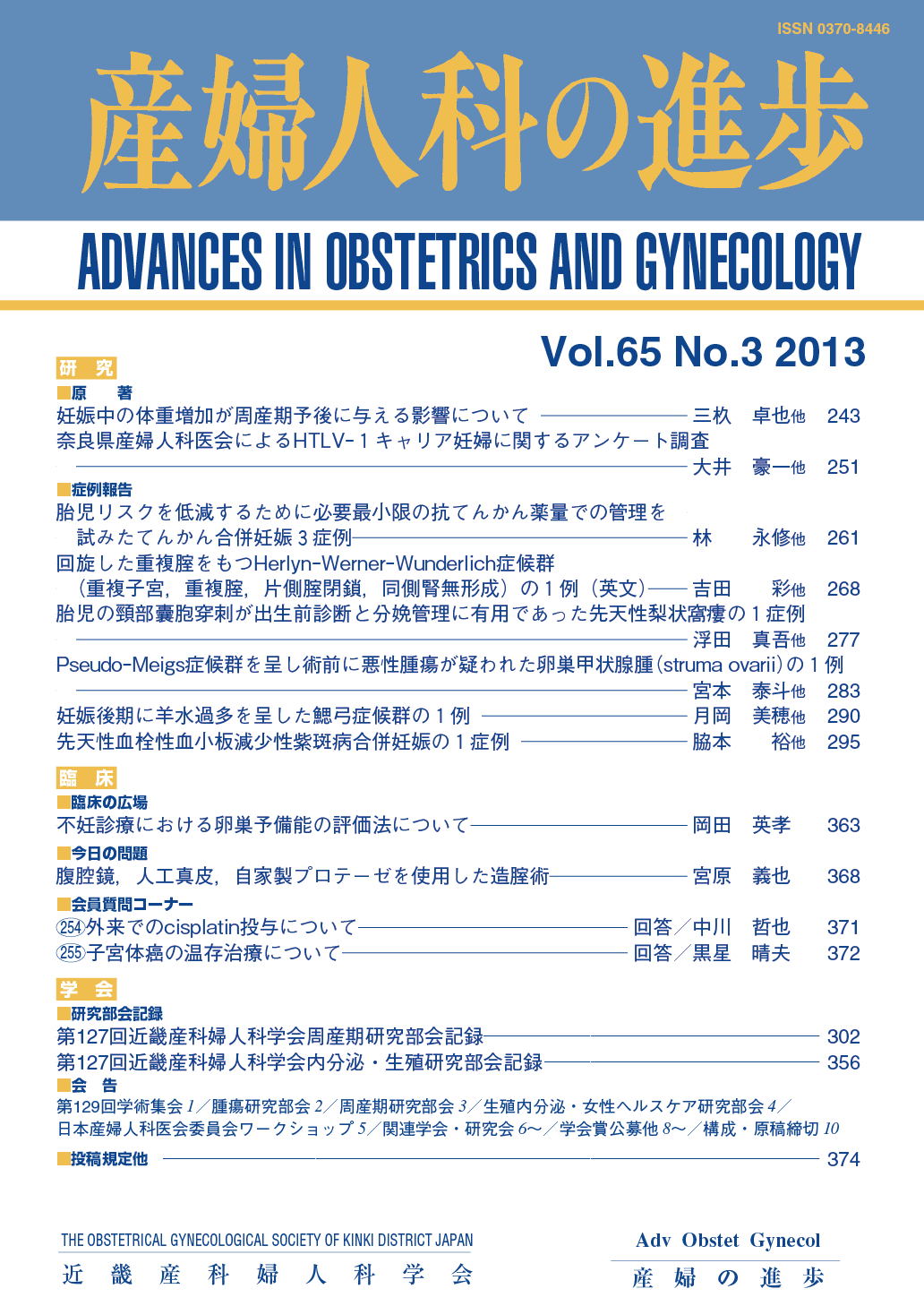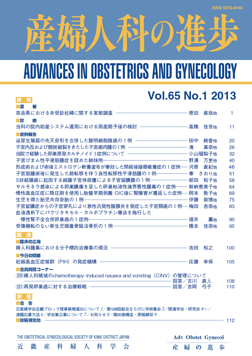 産婦人科の進歩65巻 1-4号